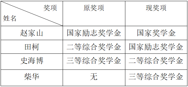 77779193永利官网集团新增国家奖学金名额一名,学院紧急召开奖学金评定小组会议,依据学生各奖项的申请,拟推荐22级4班赵家山同学获得奖学金名额,相应奖学金调整如下: